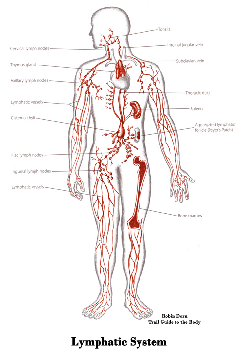 - Transport of water, protein molecules, cell debris, and other large molecules from the spaces between the skin cells to the cardiovascular system where they are processed by the liver, kidneys, and spleen.